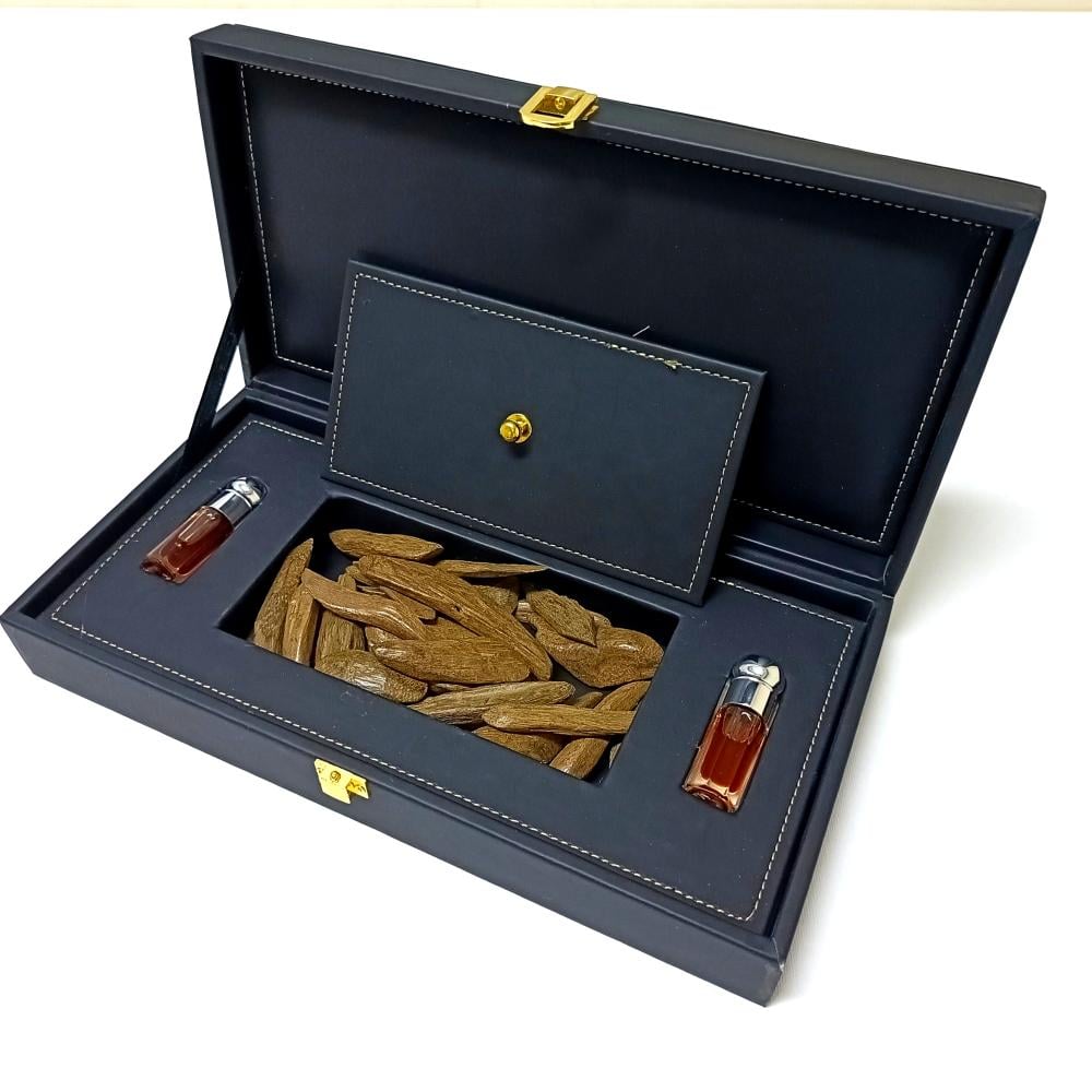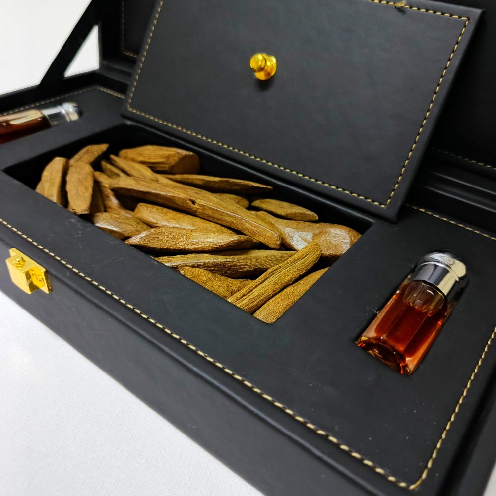 ١- أوقيتين من العود المروكي الملكي الطبيعي المحسن بالجودة العالية.